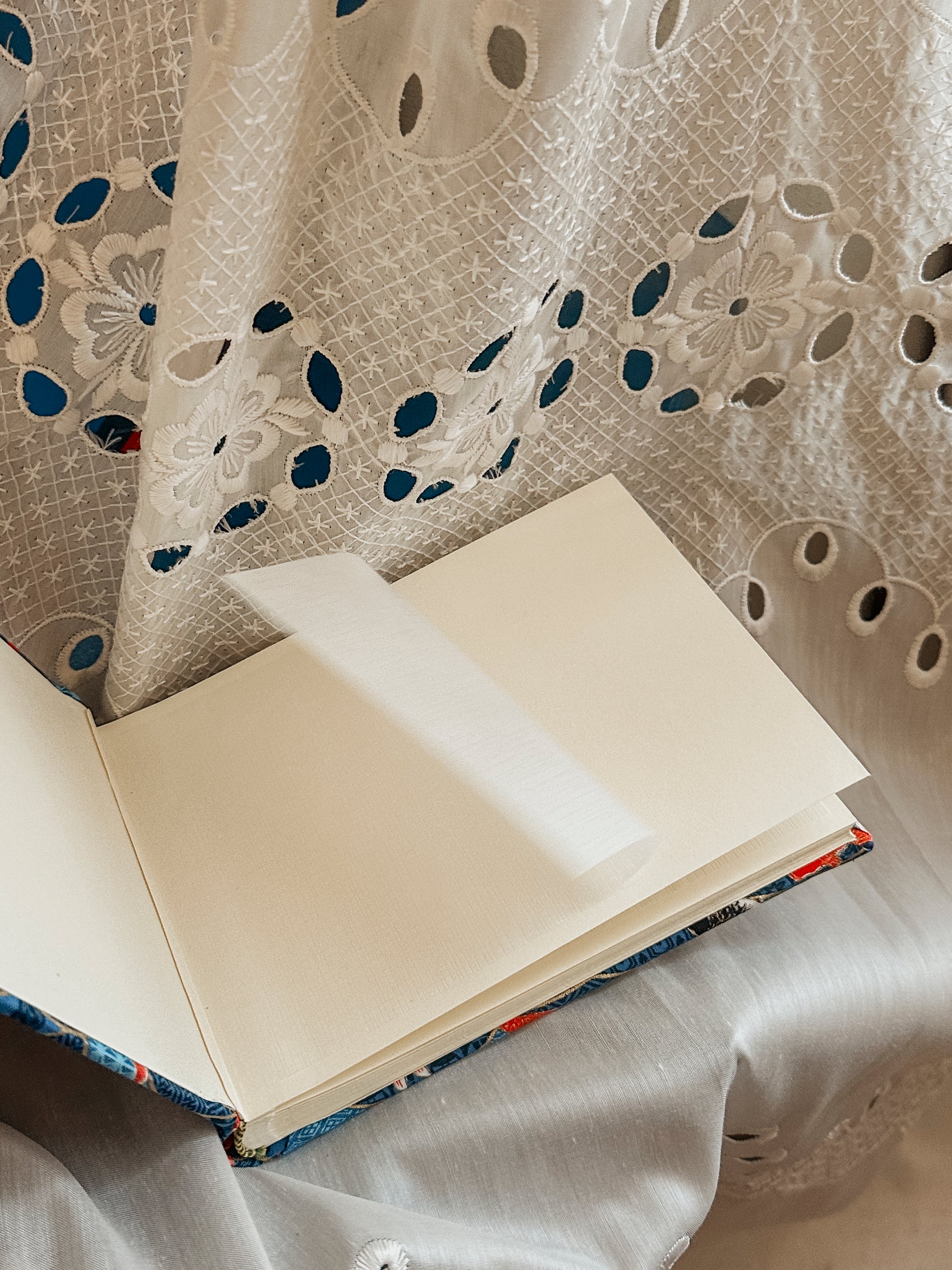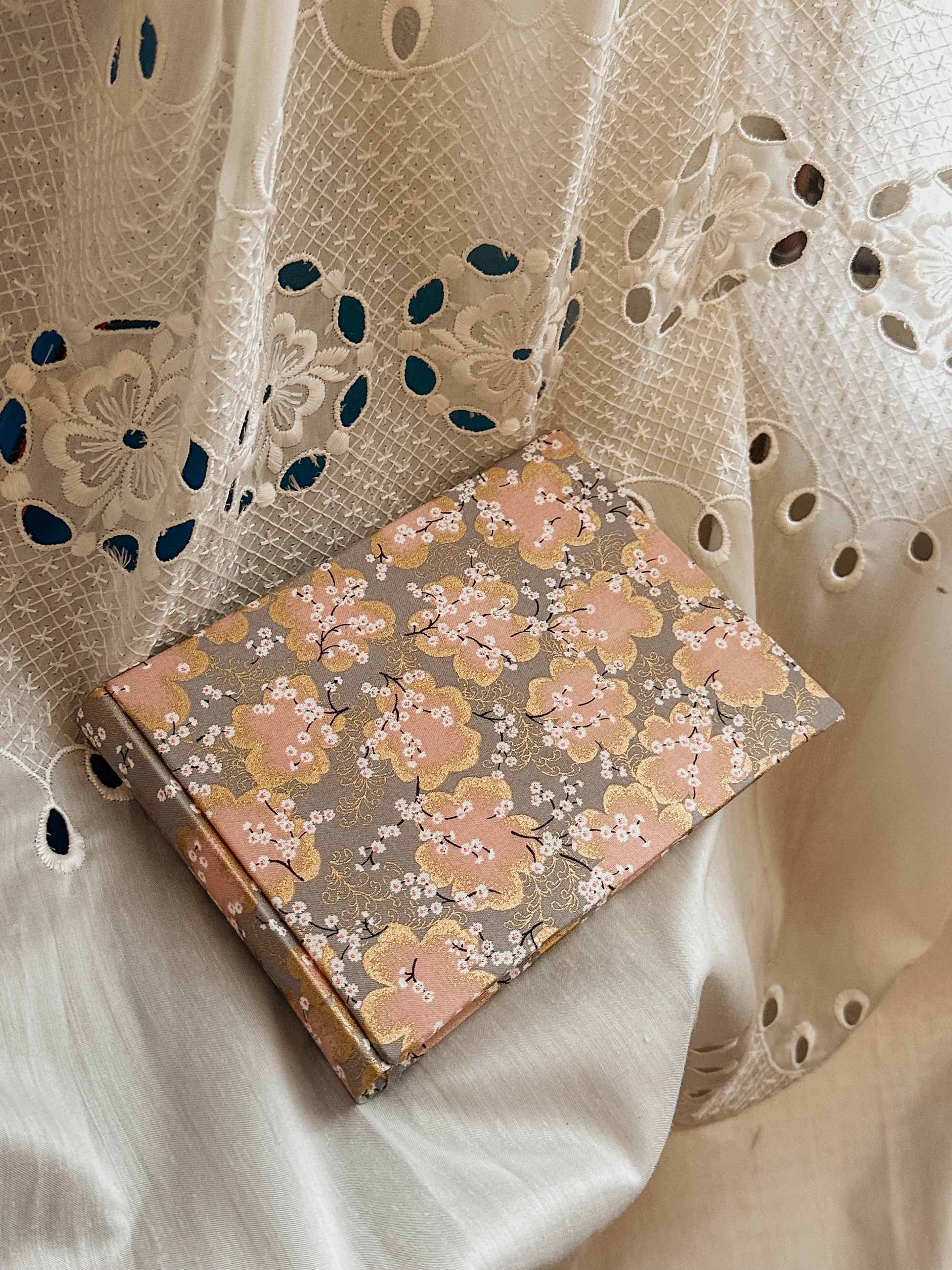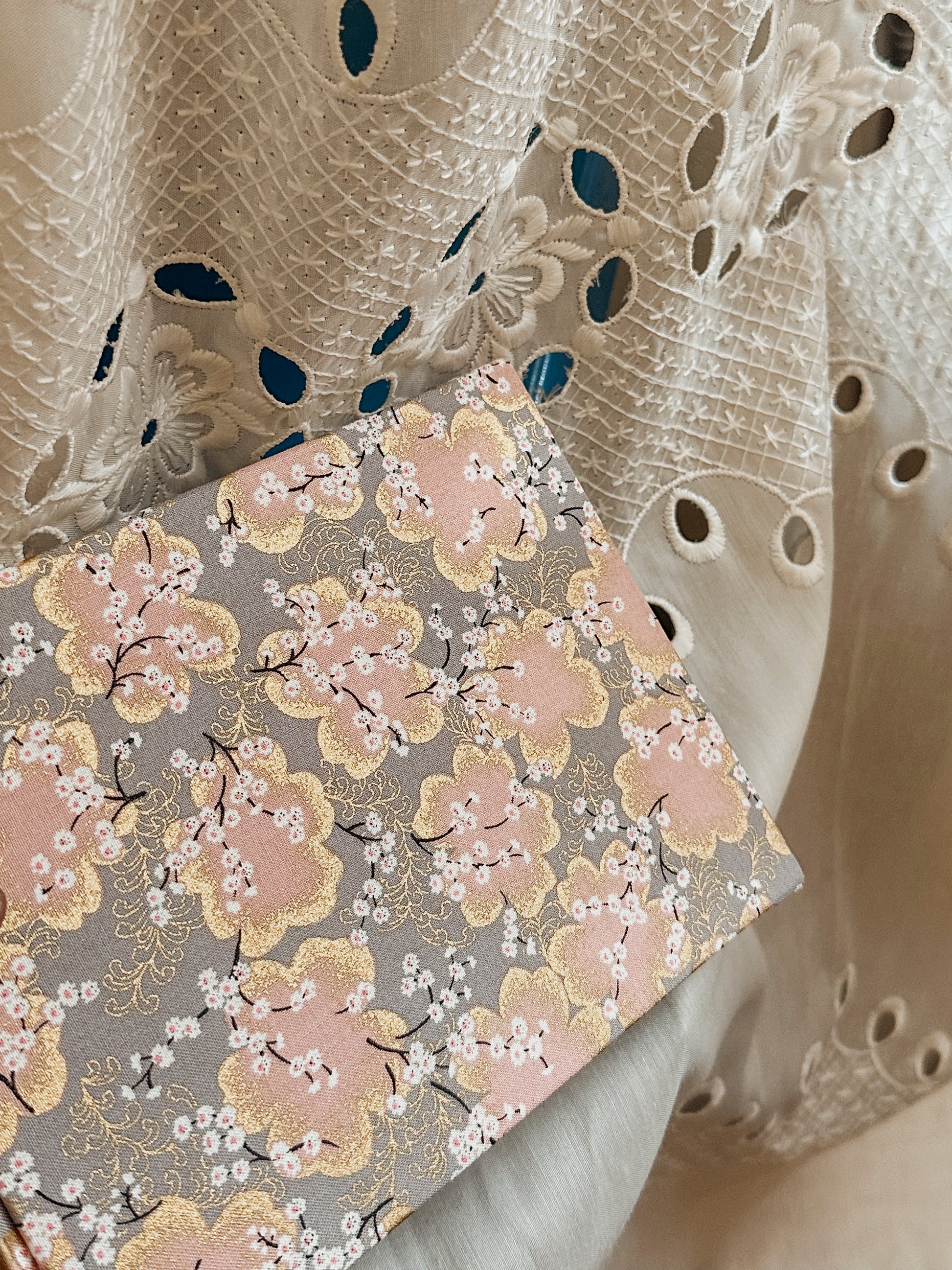 Album 15x20, copertina in stoffa giapponese decorata con fiori di ciliegio.