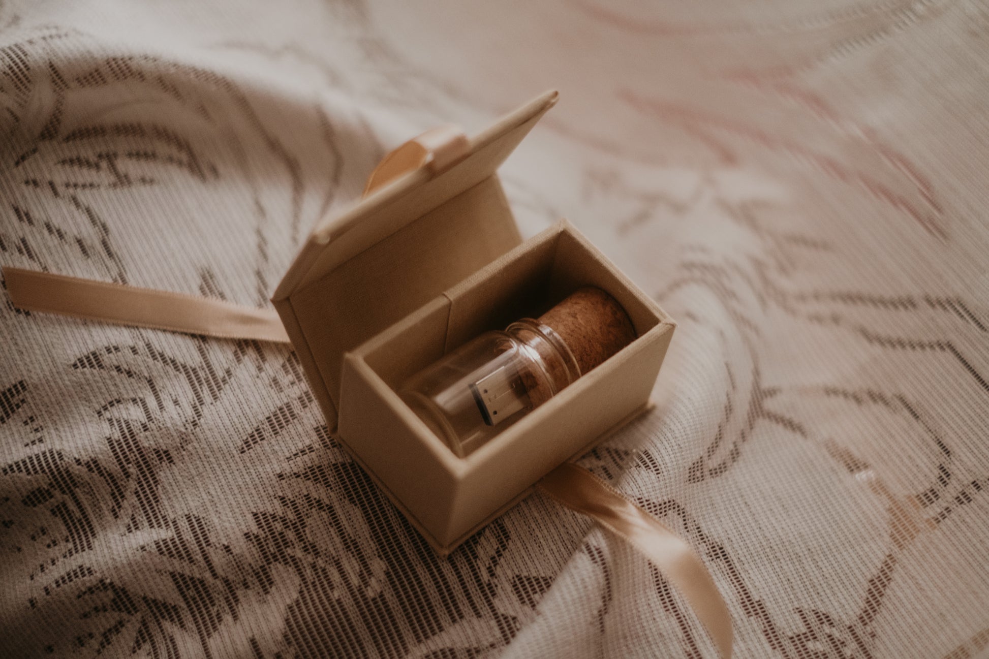 Mini box per contenere una USB a forma di bottiglia con tappo di sughero da 16 gb.