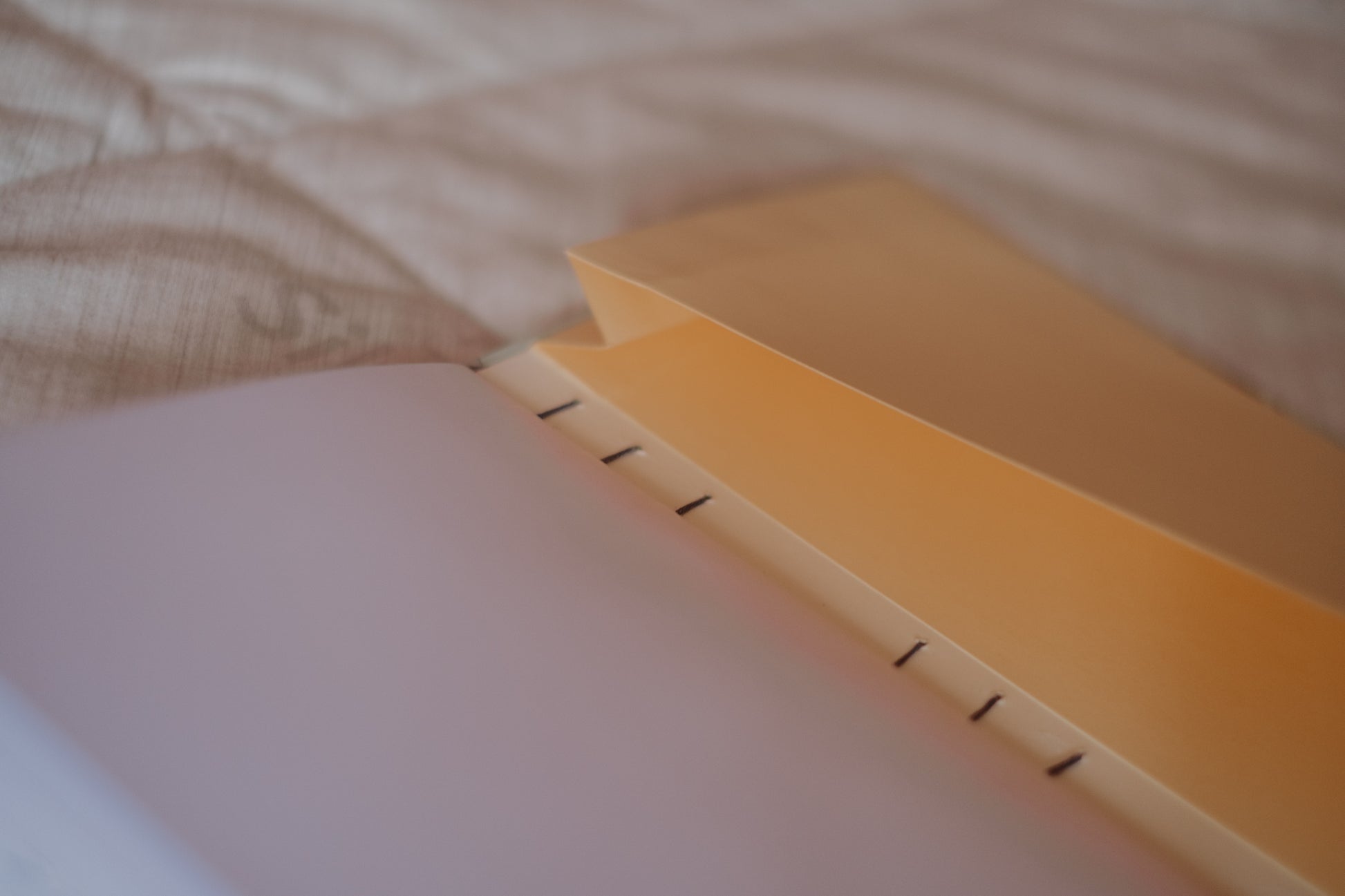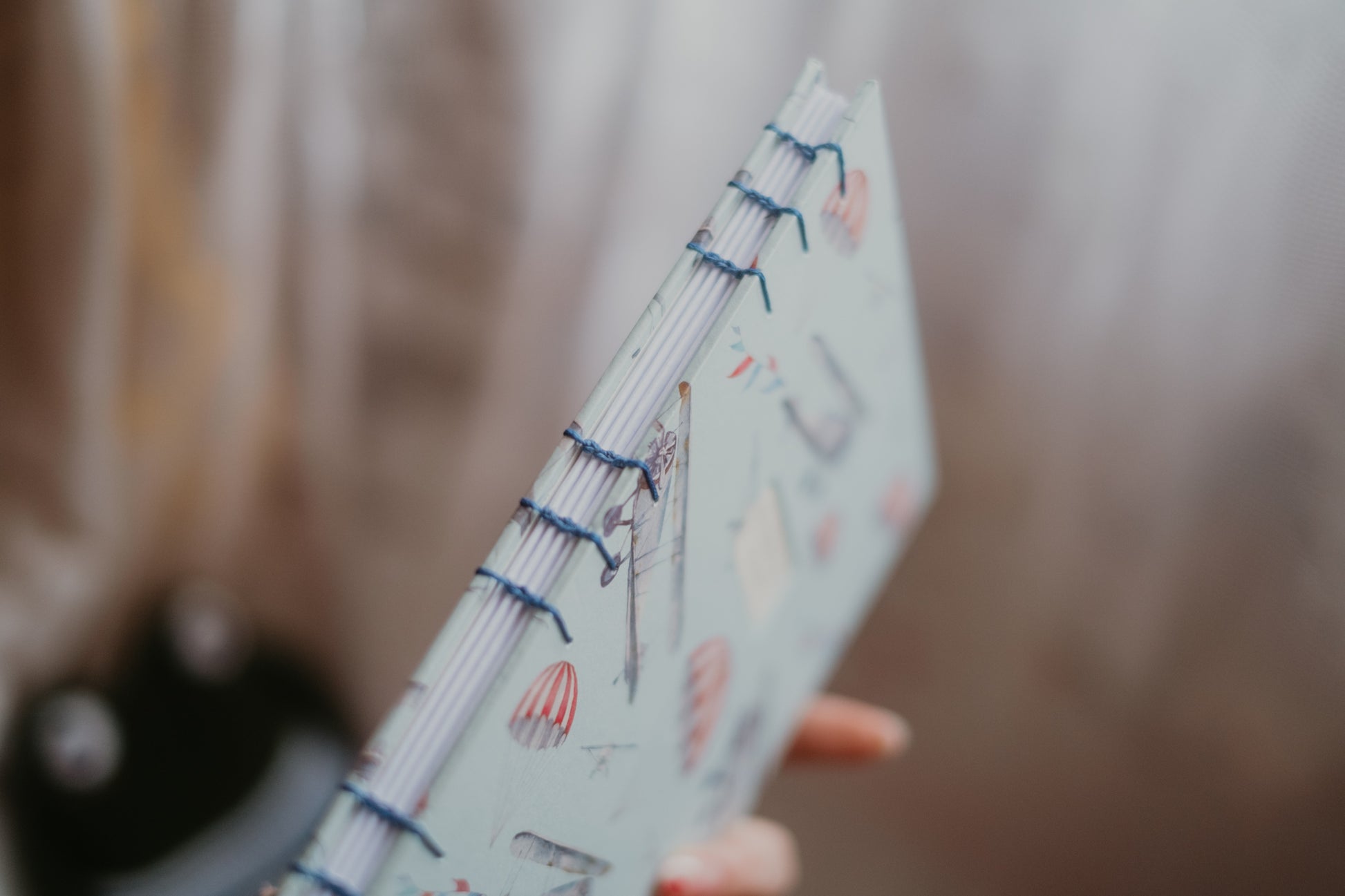 64 pagine con rilegatura copta in cartoncino 180 g, perfetto per scrivere e attaccare le foto ricordo. Alla fine del diario c'è anche una tasca per contenere bigliettini di auguri e ricordi.