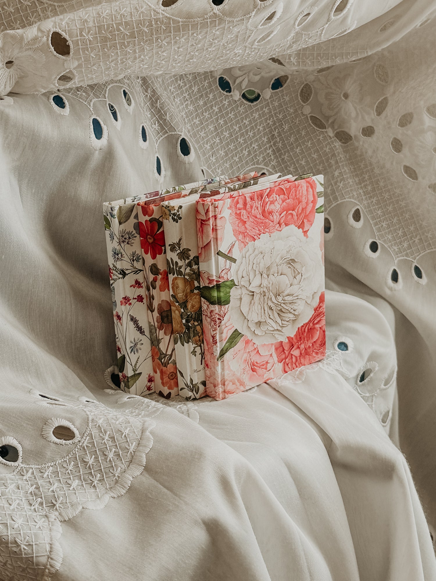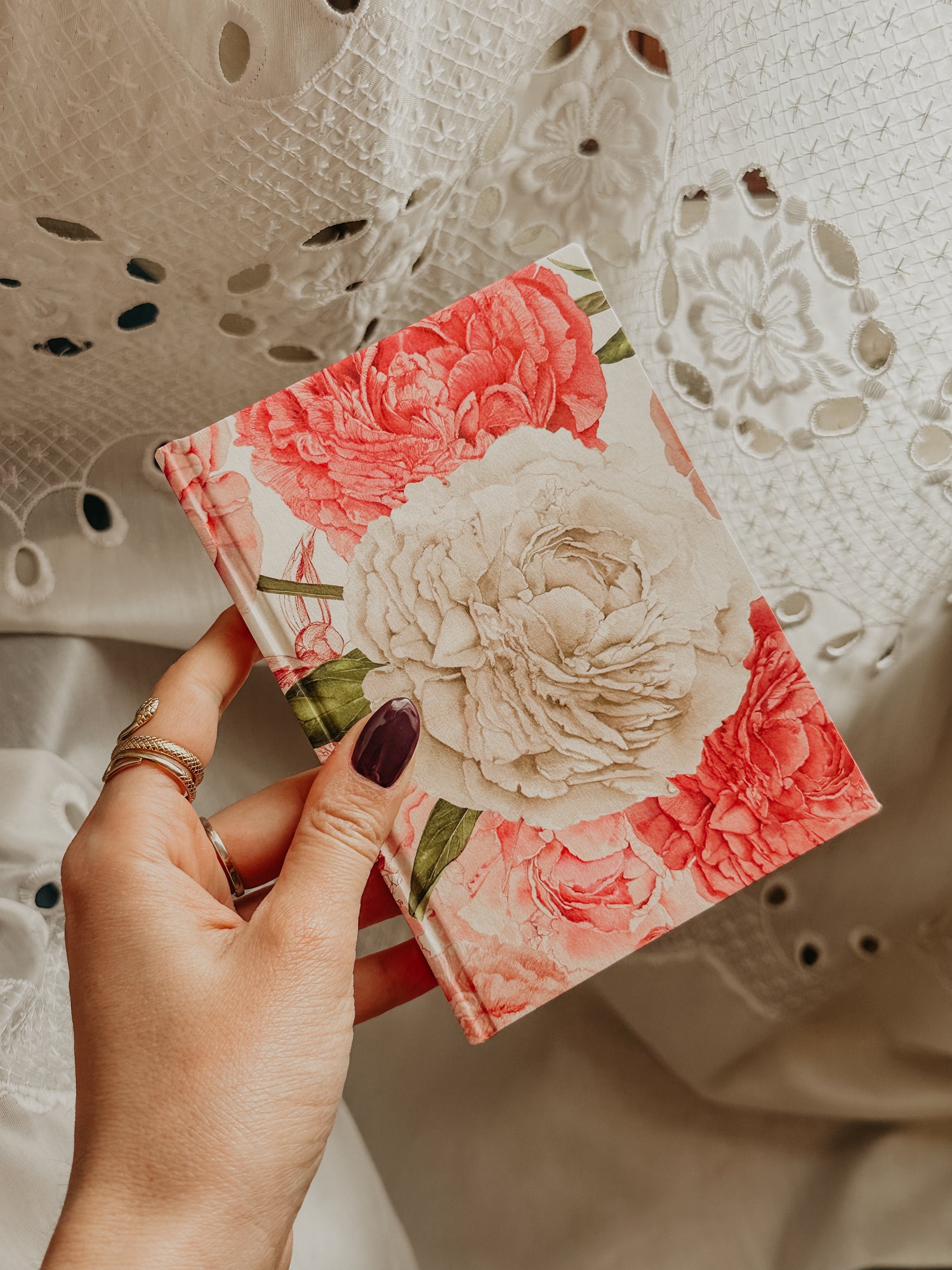 Quadernino dimensione A6 (10x15cm) o A5 (15x20cm), copertina incarta decorata Peonie di Grafiche Tassotti.