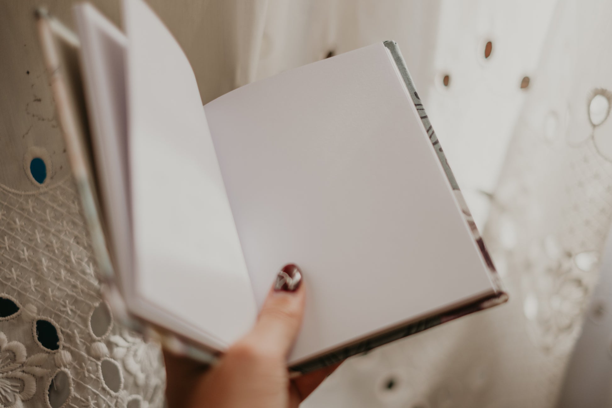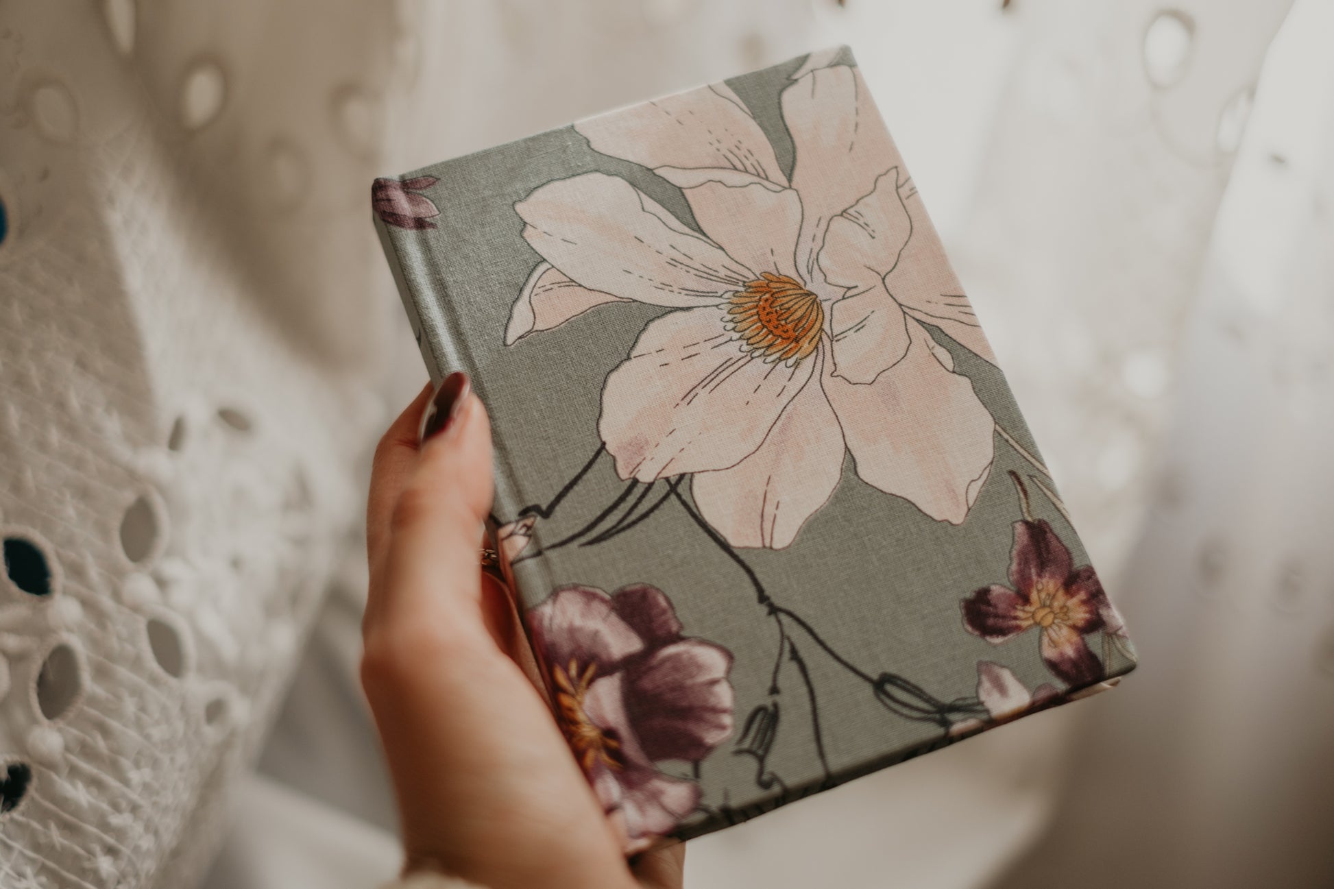 Quaderno in stoffa fiorata viola carta bianca