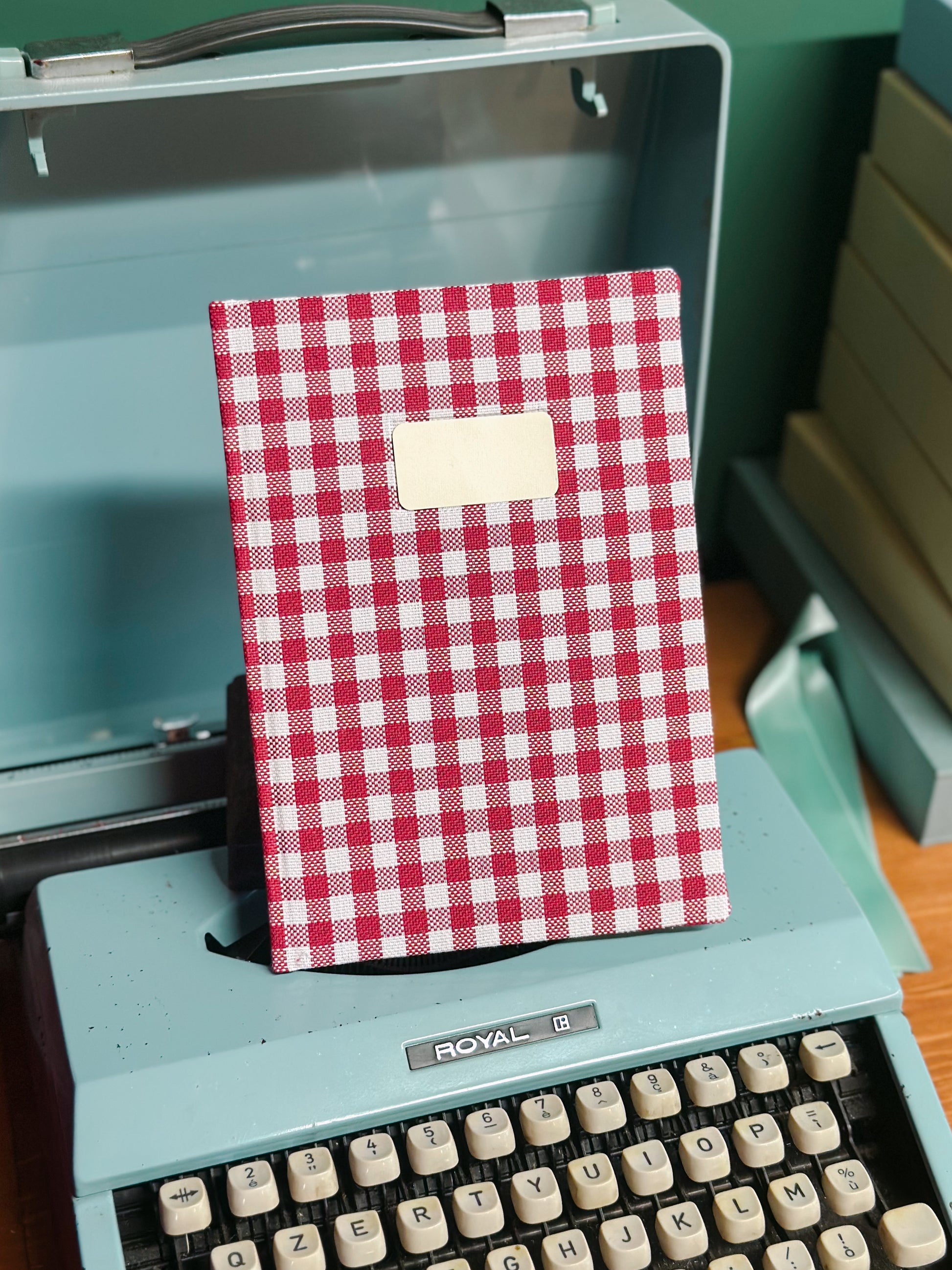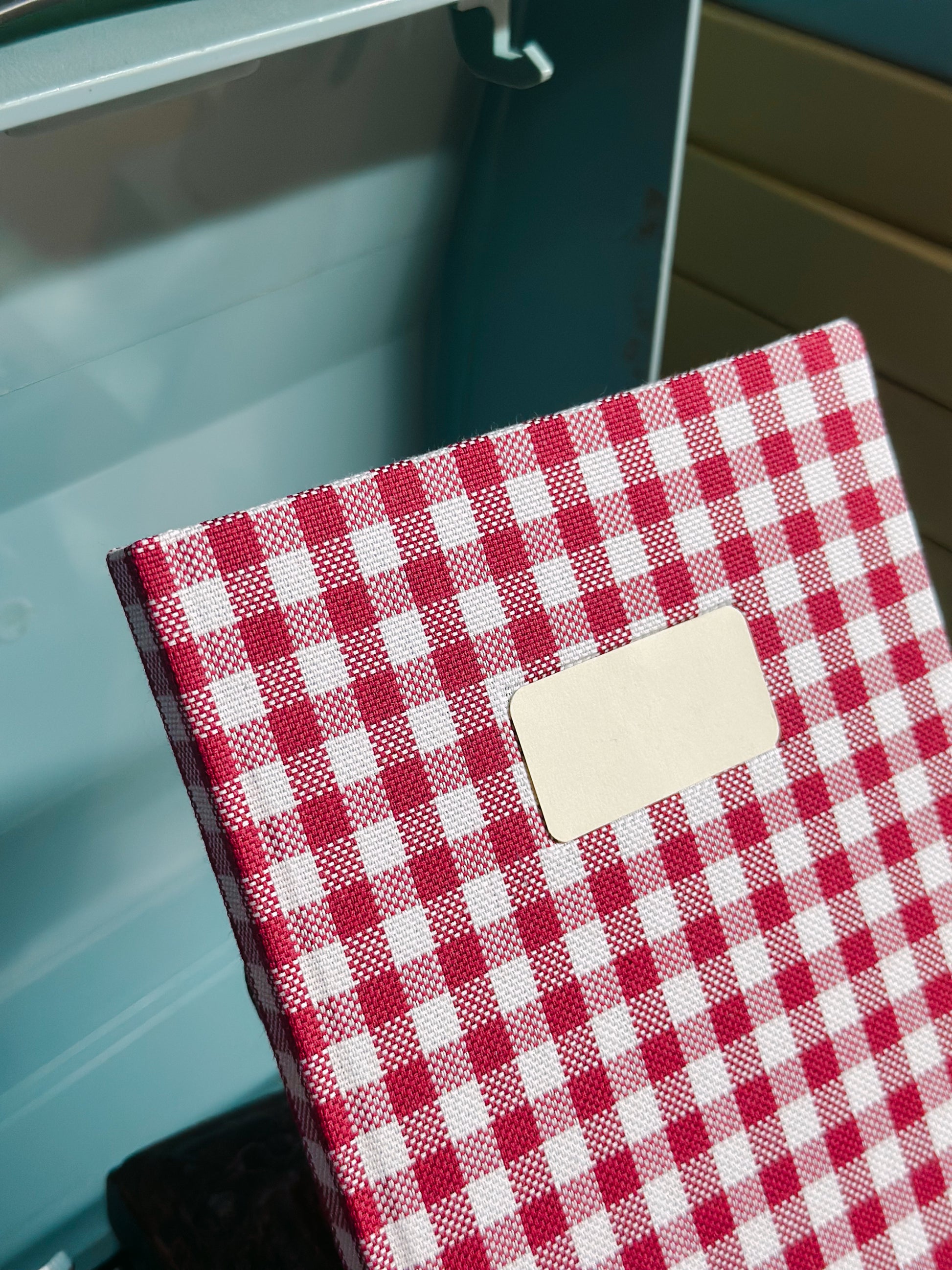 Ricettario con copertina in stoffa a quadri.